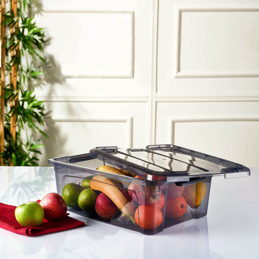 Ορθογώνιο κουτί αποθήκευσης σε διάφανο χρώμα, με διαστάσεις 29.5 x 19.5 x 14.8cm. Με χωτητικότητα 5,7 λίτρων , είναι κατασκευασμένο από καλής ποιότητας πλαστικό για μεγάλη αντοχή στο πέρασμα του χρόνου.