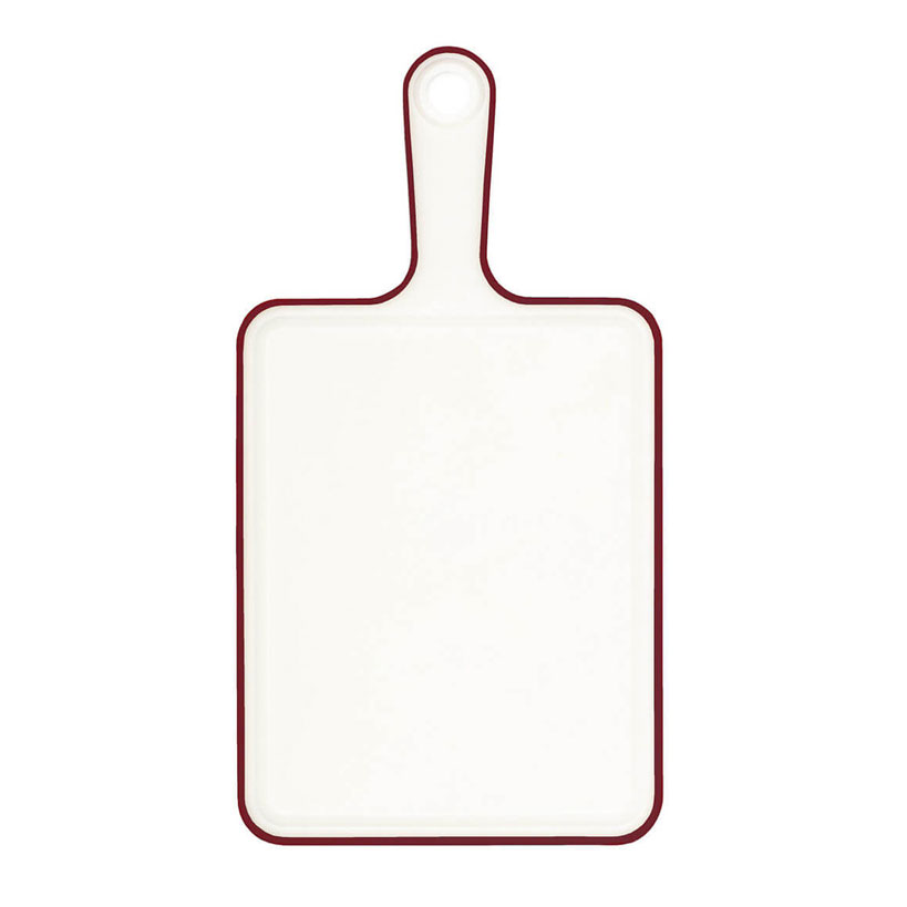 Πλαστική βάση κοπής σε λευκό χρώμα με κόκκινο αντιολισθητικό περίγραμμα που καθιστά την χρήση της πιο σταθερή & ασφαλή . Με διαστάσεις 35.4 x 19.8 x 6cm , είναι κατασκευασμένη από καλής ποιότητας πλαστικό για μεγάλη αντοχή στο πέρασμα του χρόνου.