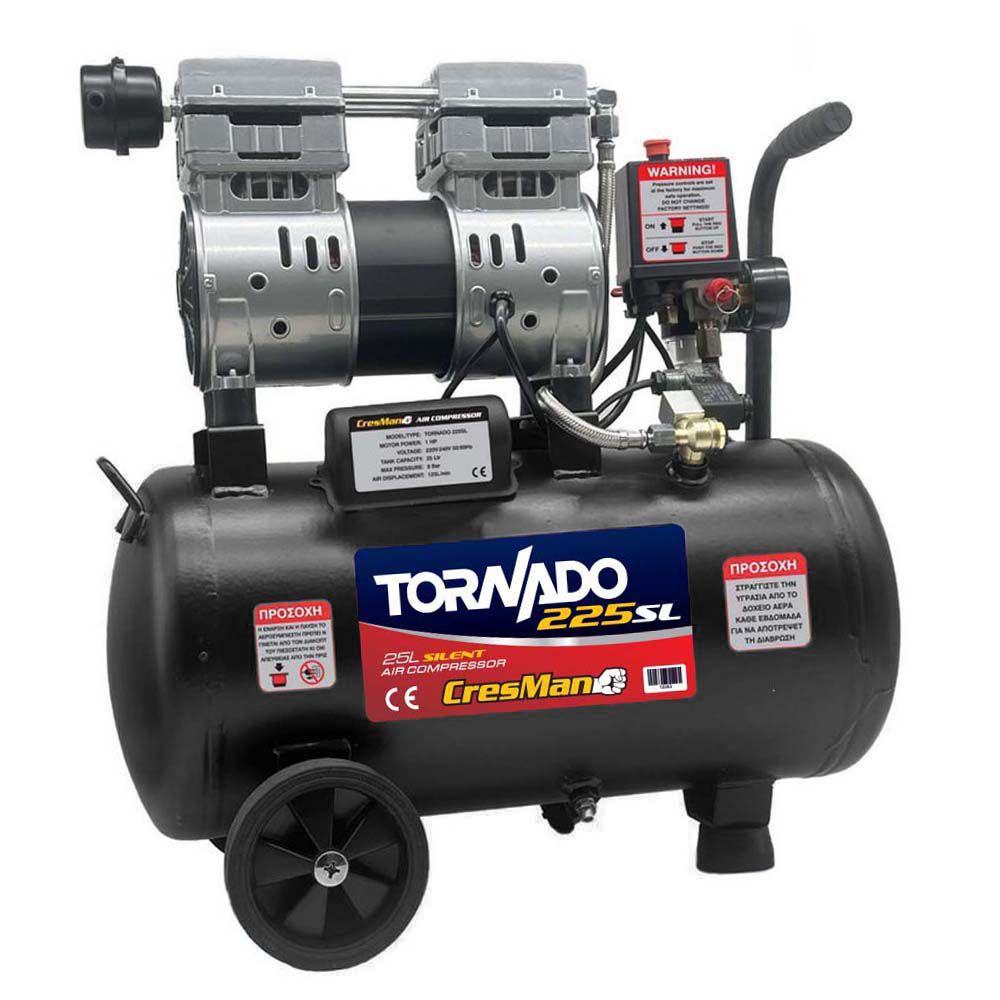 Κομπρεσέρ αέρος αθόρυβο Cresman tornado 225sl 25l 1hp