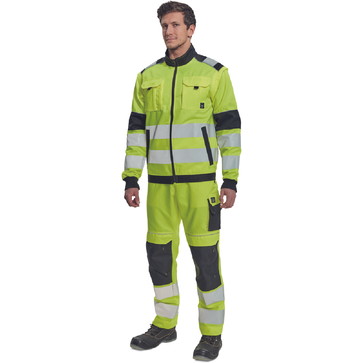 Το μπουφάν εργασίας Max Vivo 2σε1 σε χρώμα κίτρινο υψηλής ευκρίνειας σε μέγεθος L, προσφέρει εξαιρετική ορατότητα και ευκολία χρήσης με το φερμουάρ και τα αποσπώμενα μανίκια. Διαθέτει πληθώρα τσεπών, ανακλαστικές ρίγες, ενισχυμένη περιοχή ώμων και αντανακλαστικά στολίδια για ασφάλεια στον χώρο εργασίας.