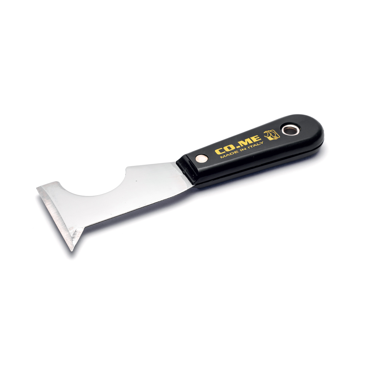 Η COME Σπάτουλα Πολλαπλών Χρήσεων 65mm είναι εξοπλισμένη με πλαστική λαβή που παρέχει σταθερό και αντιολισθητικό χειρισμό, ενώ διαθέτει και τρύπα για εύκολο κρέμασμα. Η λεπίδα της είναι κατασκευασμένη από ανοξείδωτο ατσάλι, προσφέροντας υψηλή αντοχή και αξιοπιστία. Η λεπίδα είναι καρφωμένη σταθερά στη λαβή για ασφαλή χρήση.