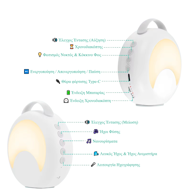 Giggles and Co. GM-07 Συσκευή Ύπνου με 30 Ήχους Νανούρισματος, Λευκούς Ήχους & Φως Νυκτός