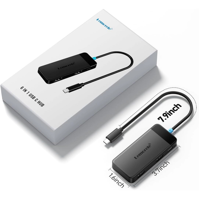 Lemorele TC122 USB-C Hub 6 σε 1 Docking Station με Dual HDMI 4K, 3x USB, PD 100W – Dual Monitor για Laptop / MacBook / Surface