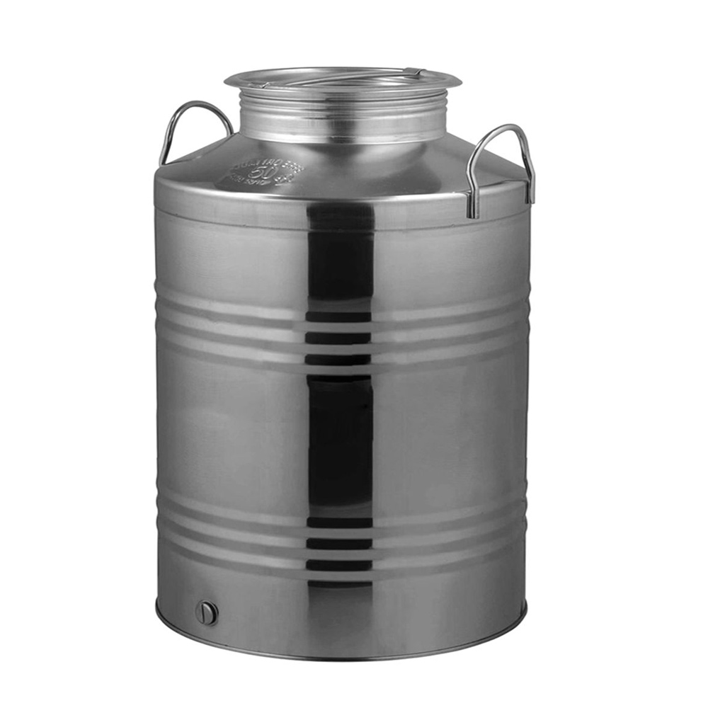 Ανοξείδωτο δοχείο αποθήκευσης πόσιμων υγρών με εργονομικά σχεδιασμένο βιδωτό καπάκι, το οποίο εξασφαλίζει απόλυτη στεγανότητα και ασφάλεια στο εσωτερικό του. Το δοχείο καλύπτει τους κανόνες ασφαλείας και υγιεινής και είναι κατασκευασμένο από υλικά κατάλληλα για τρόφιμα-υγρά.