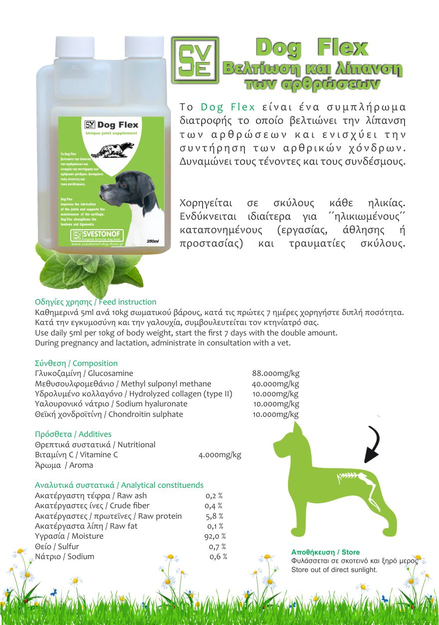Το Dog Flex είναι ένα συμπλήρωμα διατροφής το οποίο βελτιώνει τη λίπανση των αρθρώσεων και ενισχύει τη συντήρηση των αρθρικών χόνδρων. Δυναμώνει τους τένοντες και τους συνδέσμους.