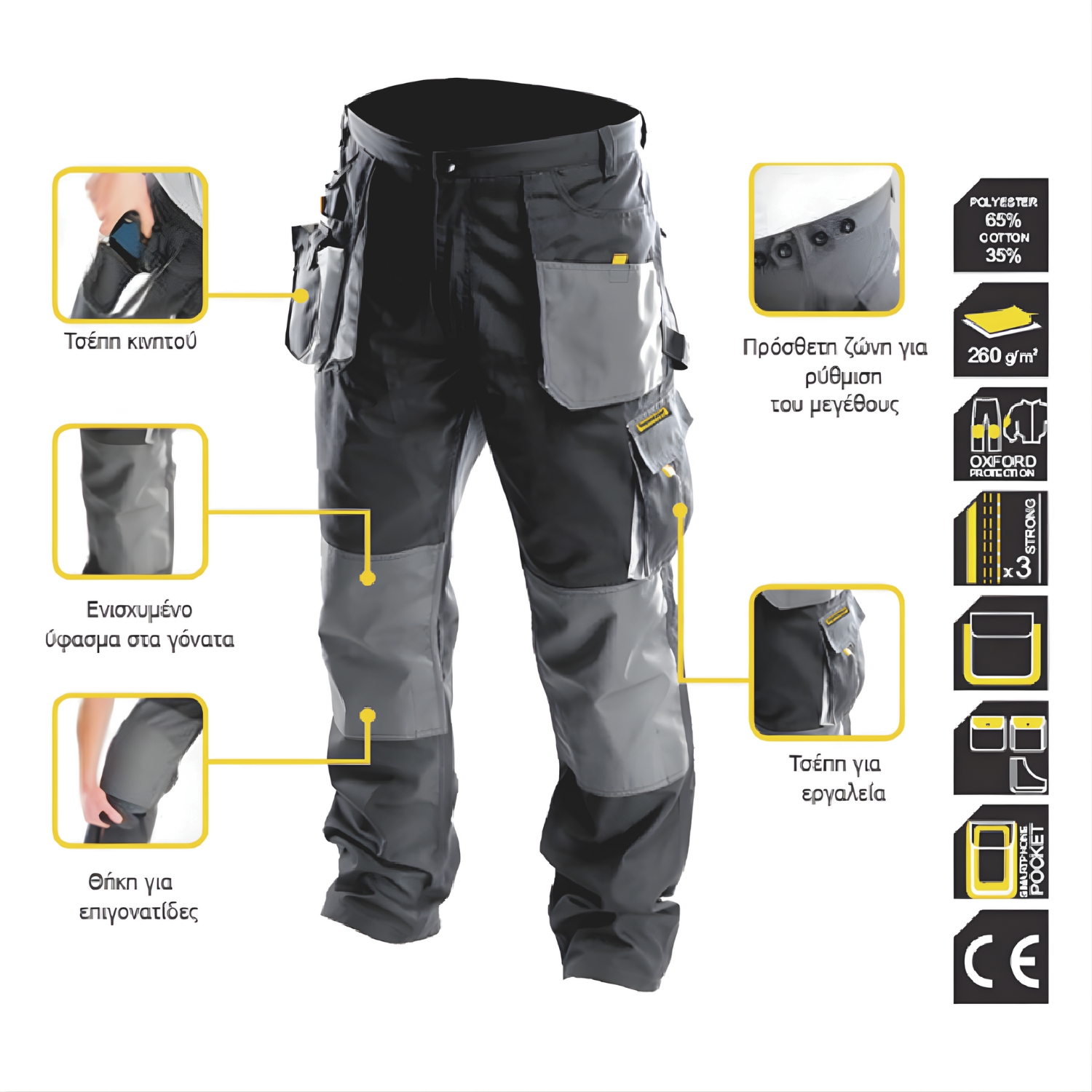 Το παντελόνι Top Master XL 557203 είναι σχεδιασμένο για να προσφέρει ανέσεις και λειτουργικότητα κατά τη διάρκεια της εργασίας. Κατασκευασμένο από υψηλής ποιότητας ύφασμα με ενίσχυση στα γόνατα, εξασφαλίζει αντοχή και προστασία. Η ειδική τσέπη για smartphone, η ρυθμιζόμενη ζώνη και η θήκη εργαλείων προσθέτουν στην λειτουργικότητα του παντελονιού.