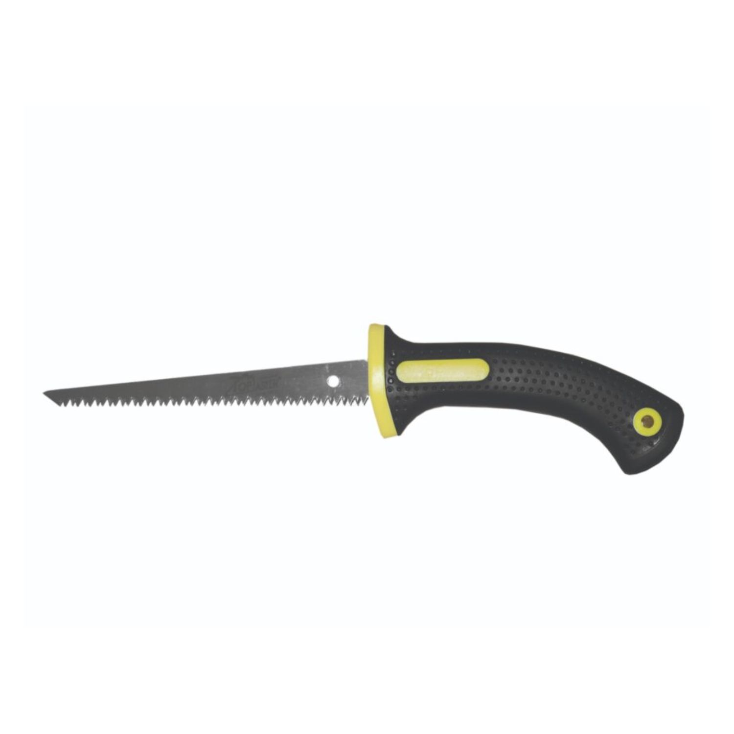 Το πριόνι γυψοσανίδας της TOP MASTER με μήκος λάμας 15 εκατοστών προσφέρει εξαιρετική απόδοση στην κοπή γυψοσανίδας και ξύλου. Η λαβή του είναι σχεδιασμένη από δύο υλικά, προσφέροντας άνεση και στιβαρό κράτημα για ασφαλή χρήση. Η λάμα διαθέτει τρισόπλευρα ακονισμένα και σκληρυμένα δόντια που εξασφαλίζουν ακριβείς και καθαρές κοπές σε υλικά διαφορετικής σκληρότητας. Η πρακτική θήκη αποθήκευσης συμπληρώνει το σετ, προστατεύοντας το πριόνι και διευκολύνοντας τη μεταφορά του.