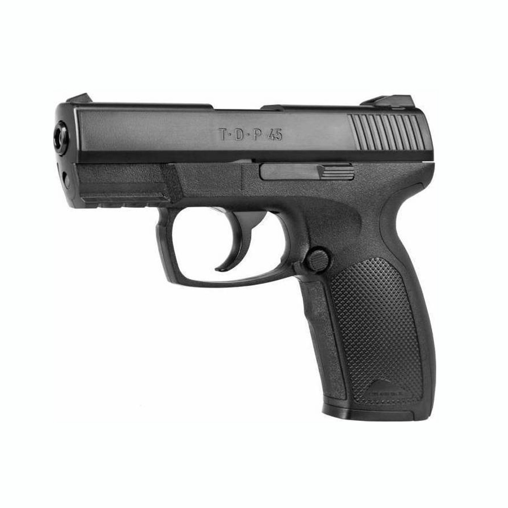Umarex TDP45 4.5mm. Αεροβόλο πιστόλι της UMAREX φτιαγμένο από πολυμερικό κορμό πολύ καλής ποιότητας με πολύ ωραία αίσθηση στο χέρι. Δέχεται αμπούλα CO2 12gr στη χειρολαβή και διαθέτει μεταλλική γεμιστήρα που τοποθετούμε 19 ατσαλένιες μπίλιες ΒΒs. Στα πλάγια του κορμού υπάρχει ασφάλεια.