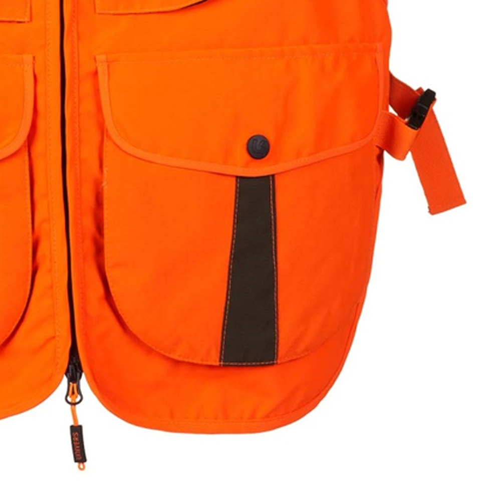 Γιλέκο σχεδιασμένο για κυνήγι αγριόχοιρου, κατασκευασμένο από ανθεκτικό, υδατοαπωθητικό πολυεστέρα Οξφόρδης με διχτυωτά ένθετα στους ώμους. Δύο μεγάλες τσέπες με φυσούνα με πτερύγιο με ελαστική θήκη για φυσίγγιο μέσα, δύο τσέπες για Gps ή ασύρματο, μεγάλο πίσω σάκο θηραμάτων και δύο εσωτερικές τσέπες. Δύο ακόμη μεγάλες μπροστινές τσέπες με πλαϊνή είσοδο. Το γιλέκο μπορεί να φορεθεί πάνω από σακάκι ή άλλο ρούχο καθώς έχει ρυθμιζόμενο λουράκι στο πλάι.