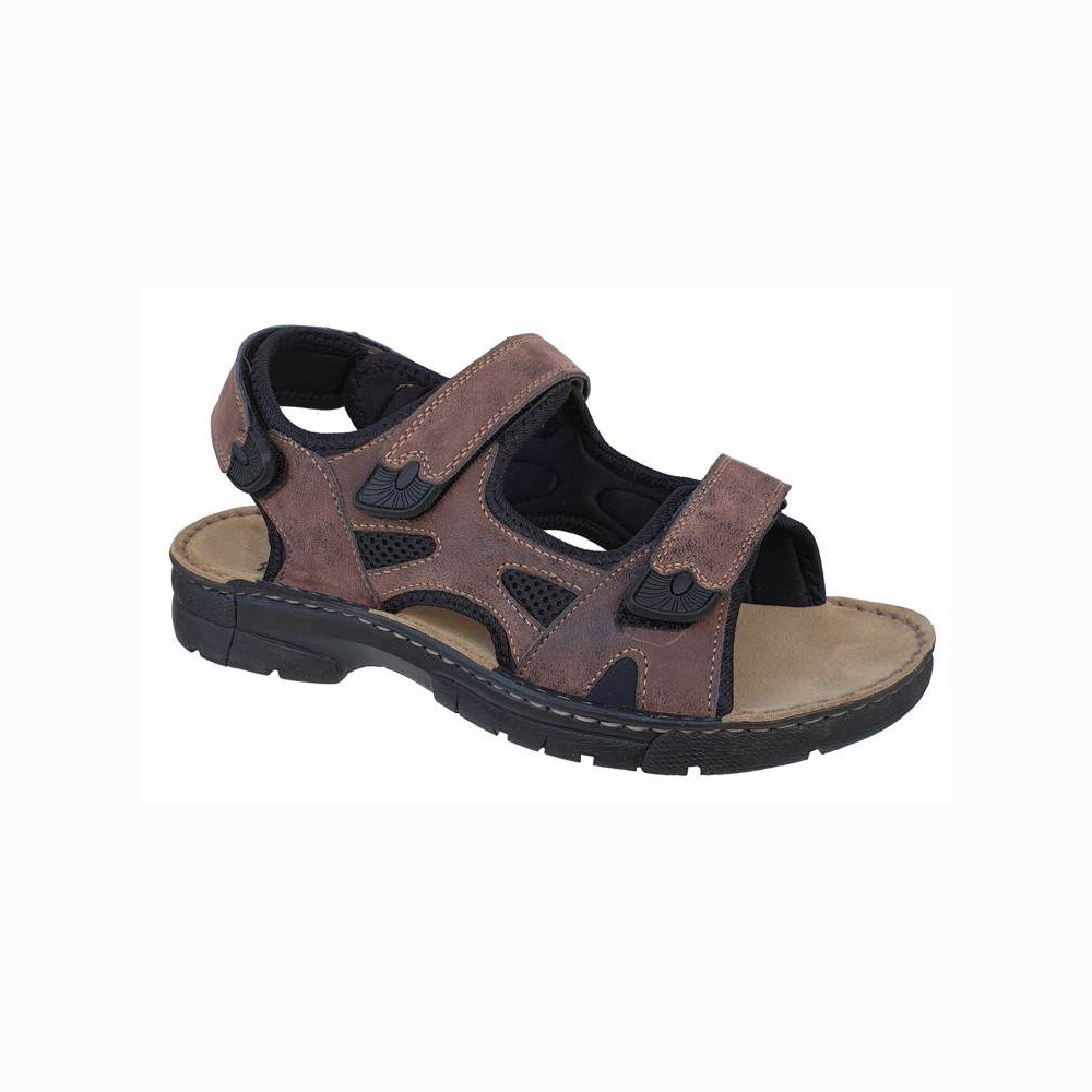Ανδρικά μοντέρνα πέδιλα, ελαφριά και πολύ άνετα. Διαθέτουν τρία κουμπώματα με velcro για καλύτερη εφαρμογή. Διαθέτουν ελαφριά αντιολισθητική σόλα και δερμάτινο πάτο. Ένα παπούτσι για ξεκούραστο βάδισμα και σπορ εμφάνιση στην πόλη και στην παραλία.